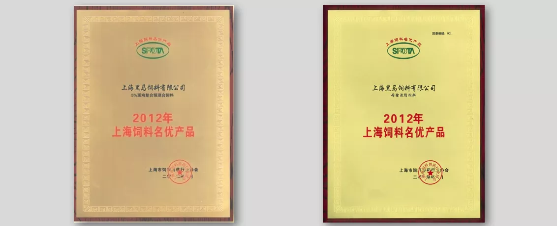 公司的產品一直廣受好評,曾先后獲得過“上海飼料名優產品”、“規模化豬場優選產品價值體系”、“經典好豬料系列品牌”、“豬料技術創新優秀獎”、“無抗先鋒飼料品牌創新獎”等多項榮譽。